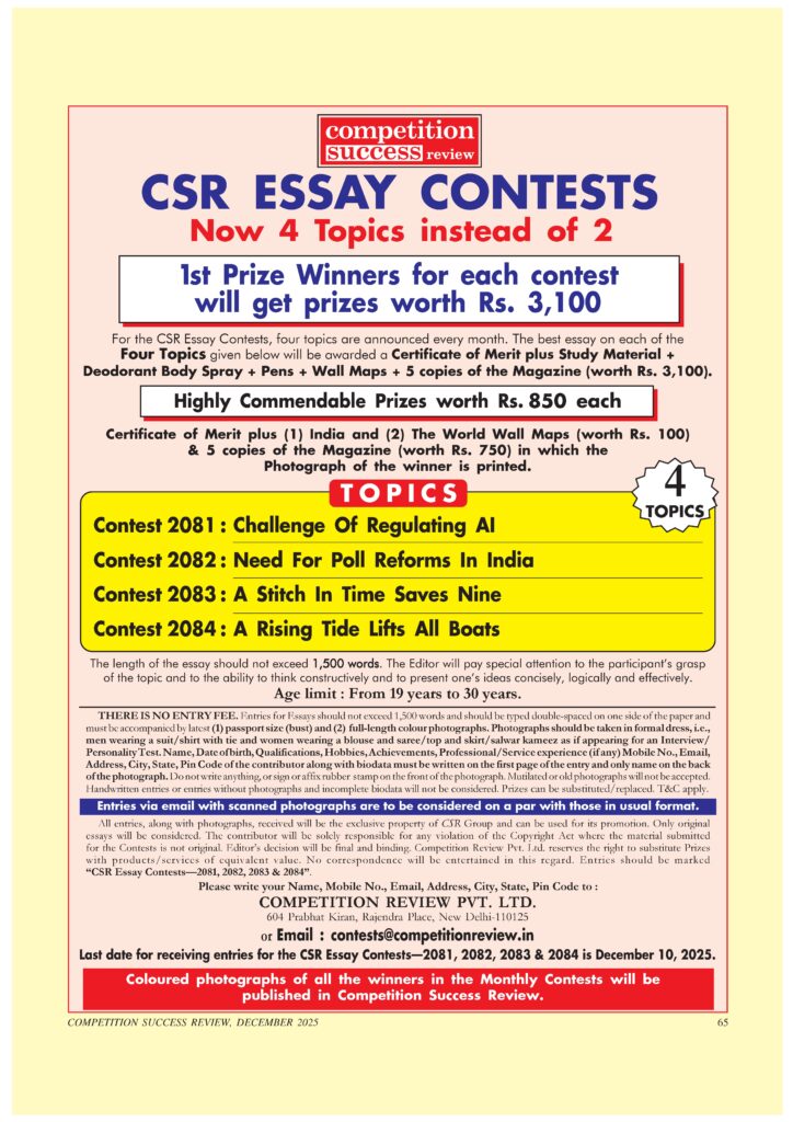 Submissions are invited for the Competition Success Review Magazine Essay Contest 2025. The deadline for submission is December 10, 2025.