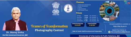 The Department of Information & Public Relations proudly announce the Frames of Transformation Photography Contest for the people of Jammu and Kashmir.