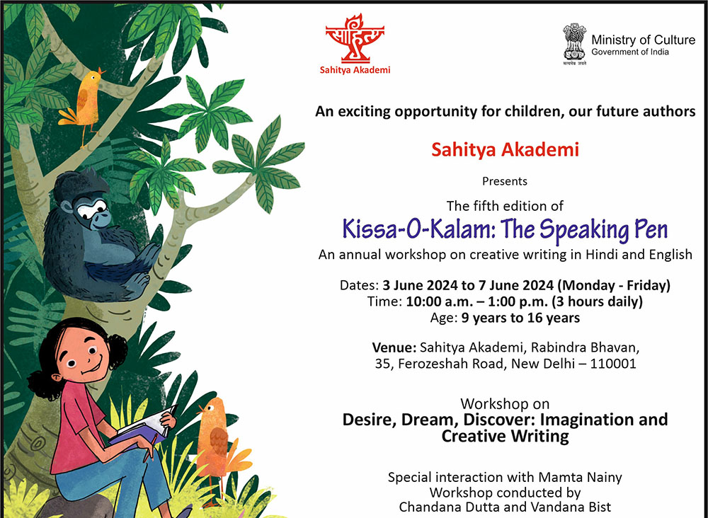 Sahitya Akademi, the National Academy of Letters, New Delhi, resumes its fifth edition of Kissa-O Kalam: The Speaking Pen, an annual workshop for children on creative writing in Hindi and English.
